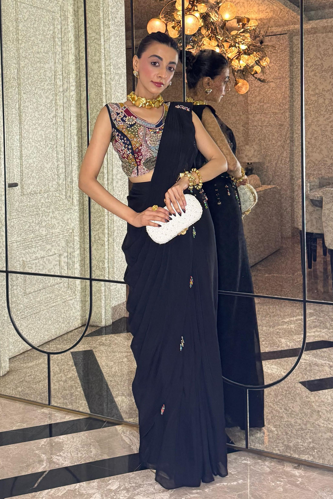 Mehak Jain In Black Heer Pre Draped Saree Set